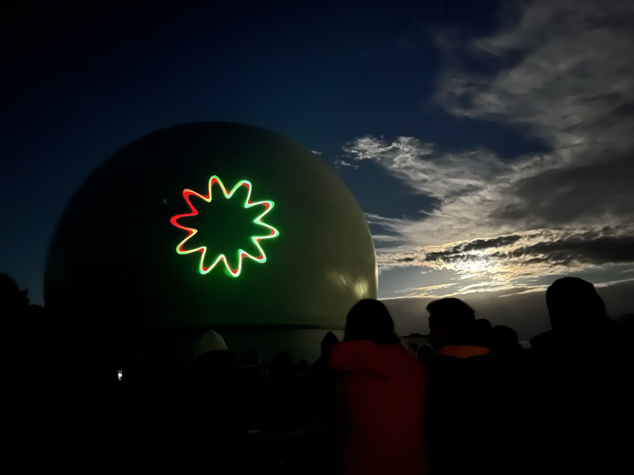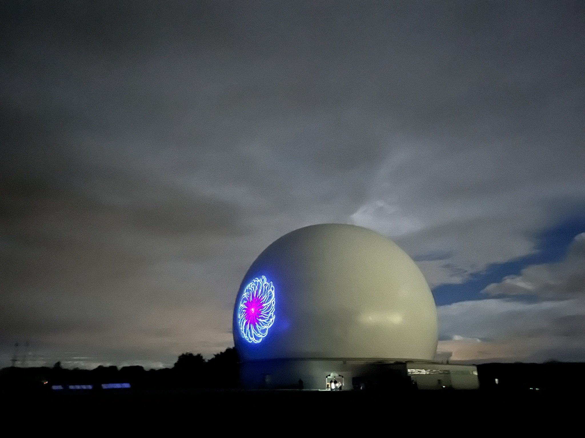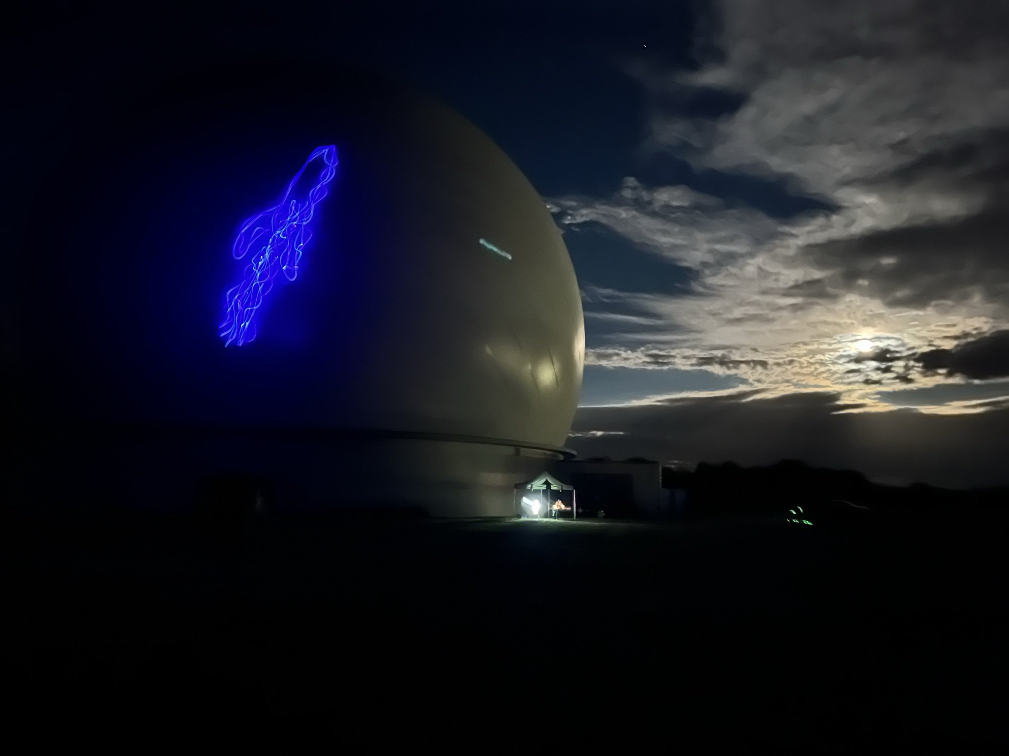 Aus den TAM TAM Expeditionen nach Raisting ist die Idee entstanden das Radom um die Antenne 1 gemeinsam audio-visuell zu bespielen. Bei den Laserjams im Raum Langevin kreuzte uns die Einsicht, dass es sich um eine nahezu ideale Austragungsstätte für Signalkultur handelt. Dort steht seit den 1960er Jahren eine 25 Meter spannende Cassegrain-Antenne mit Hornparabol-Speisung. Bekannt ist die Anlage vor allem durch ihre markante fast 35 Meter hohe und 48 Meter breite weiße kreisrunde Schutzkuppel. Sie dient uns hierbei als Projektionsfläche für die modulierten Laserimpulse. Konvex und lichtstreuend, groß und anthropometrisch eindrucksvoll, mit guten Reflexions-Eigenschaften vereint sie die Geschichte der Signaltechnik in einer einmaligen Szenerie. Zudem sei gesagt: Während der Vorstellung wird der Vollmond hinter dem Radom aufgehen. Wir hoffen, dass wir einen Startschuss geben können für ein jährlich wiederkehrendes Signalkultur-Festival.