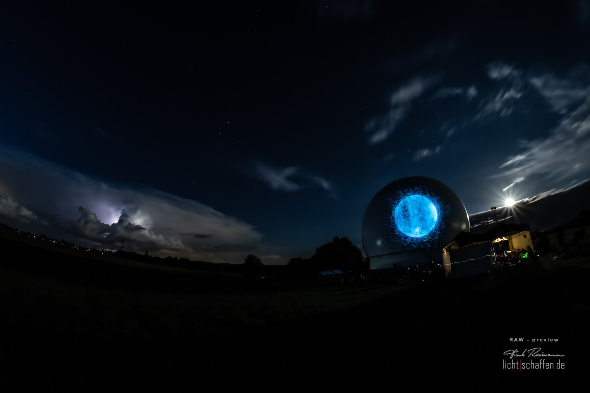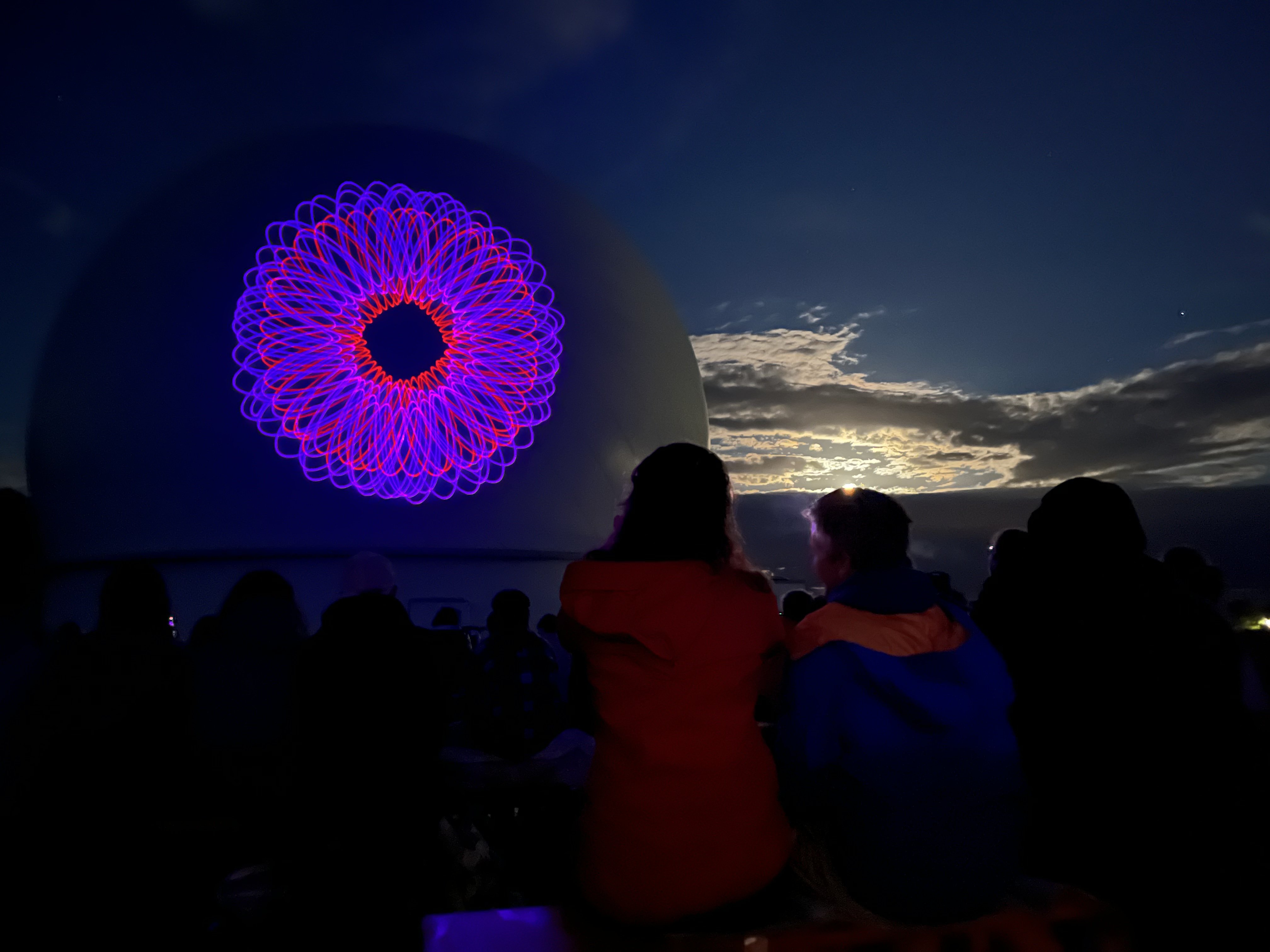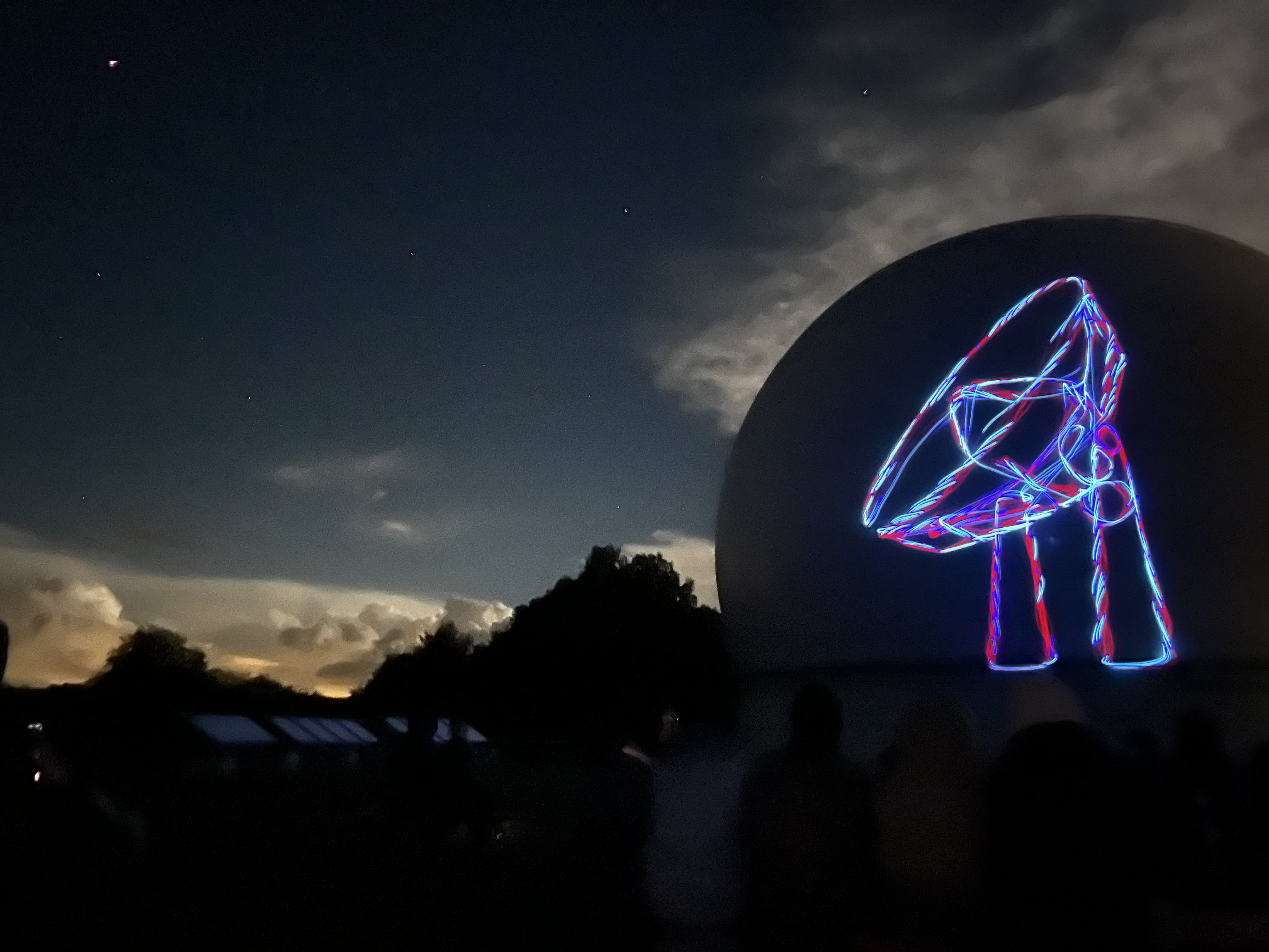 Aus den TAM TAM Expeditionen nach Raisting ist die Idee entstanden das Radom um die Antenne 1 gemeinsam audio-visuell zu bespielen. Bei den Laserjams im Raum Langevin kreuzte uns die Einsicht, dass es sich um eine nahezu ideale Austragungsstätte für Signalkultur handelt. Dort steht seit den 1960er Jahren eine 25 Meter spannende Cassegrain-Antenne mit Hornparabol-Speisung. Bekannt ist die Anlage vor allem durch ihre markante fast 35 Meter hohe und 48 Meter breite weiße kreisrunde Schutzkuppel. Sie dient uns hierbei als Projektionsfläche für die modulierten Laserimpulse. Konvex und lichtstreuend, groß und anthropometrisch eindrucksvoll, mit guten Reflexions-Eigenschaften vereint sie die Geschichte der Signaltechnik in einer einmaligen Szenerie. Zudem sei gesagt: Während der Vorstellung wird der Vollmond hinter dem Radom aufgehen. Wir hoffen, dass wir einen Startschuss geben können für ein jährlich wiederkehrendes Signalkultur-Festival.