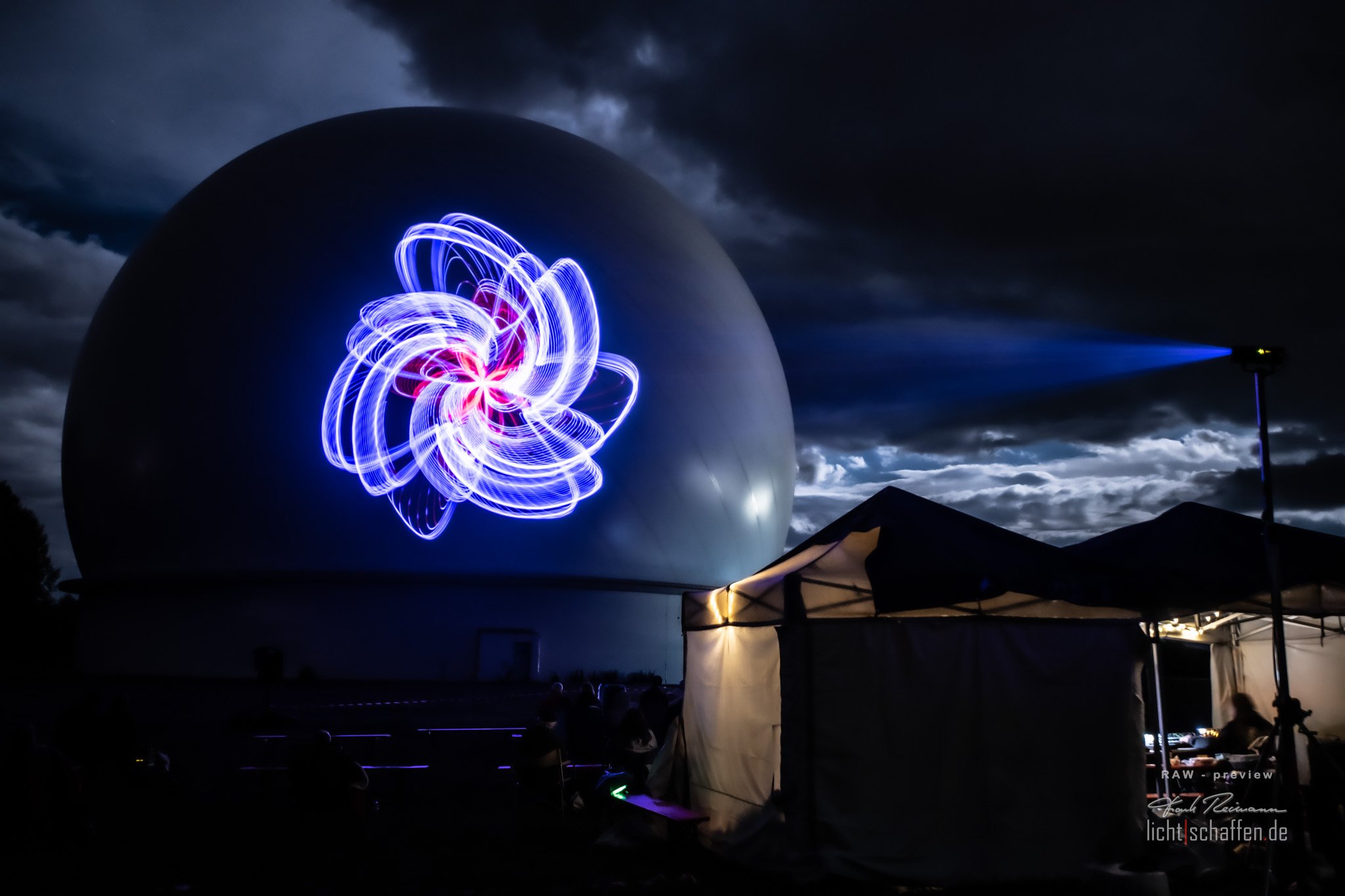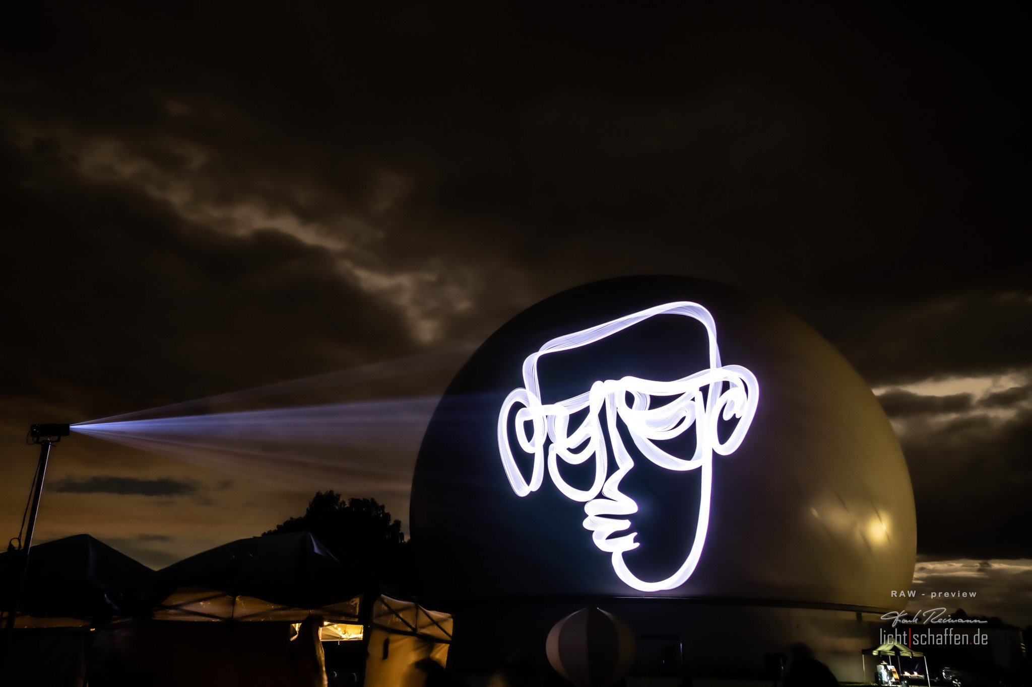 Der im drei-dimensionalen Experiment brillierende Linien-Künstler erweckt seine Figuren und Formen zum Leben wie ein Geisterbeschwörer. Die von der Raumfahrt inspirierten Modelle und Animationen tanzen zu den Klängen der Instrumente wie außerirdische Lichtwesen. Die scheinbar greifbar im Raum stehenden Objekte verschwimmen im Rausch der Klänge zu einem audio-visuellen Spektakel. In den eigens für den RADOMJAM geschaffenen Bildwelten verbindet er seine Liebe zu Musik und dem Kosmos des Räumlichen.